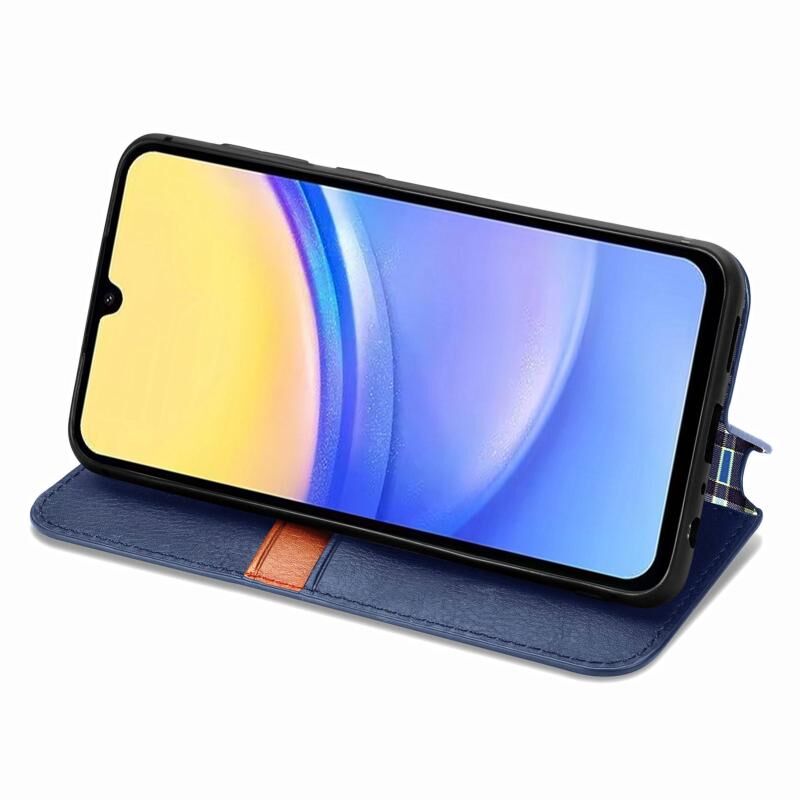 Για Samsung Galaxy A15 Cubic Grid Πιεσμένο μαγνητική δερμάτινη θήκη τηλεφώνου (μπλε)