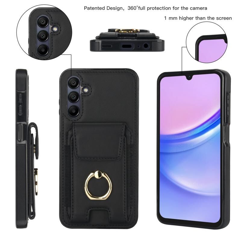 Για Samsung Galaxy A15 Ελαστική κάρτα τσάντα δαχτυλίδι τσάντα κάτοχος υπόθεση τηλεφώνου (μαύρο)