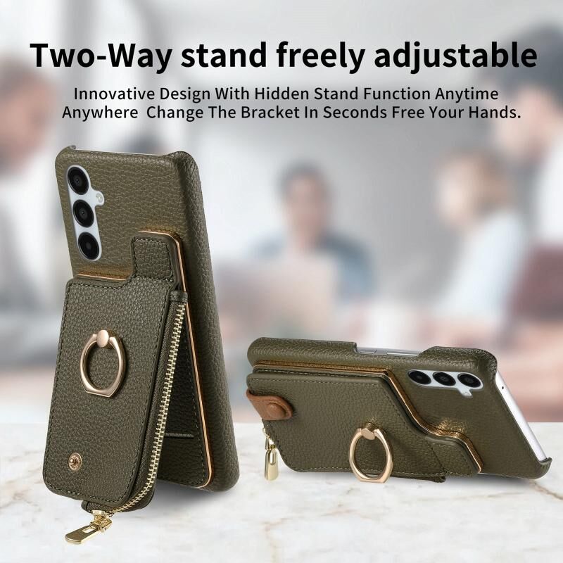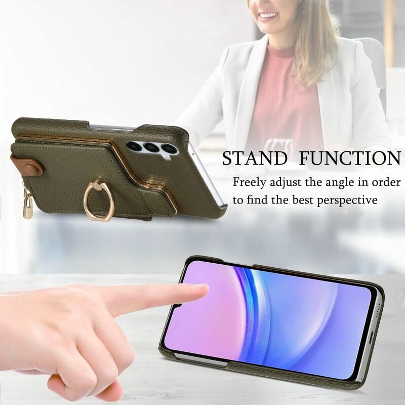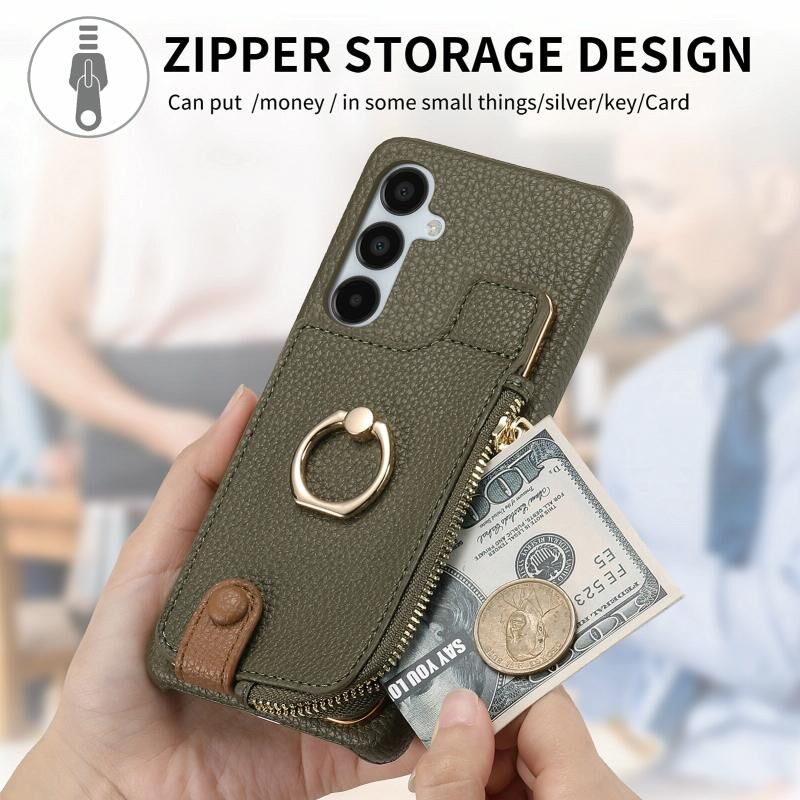 Για Samsung Galaxy A15 Litchi δέρμα λάδι Edge δαχτυλίδι φερμουάρ πορτοφόλι πίσω υπόθεση τηλεφώνου (πράσινο)