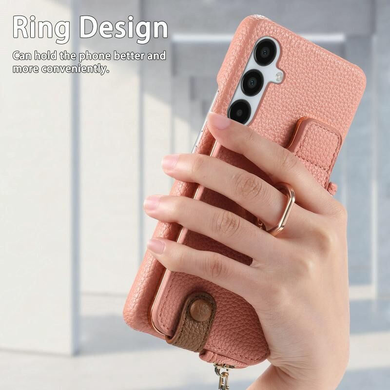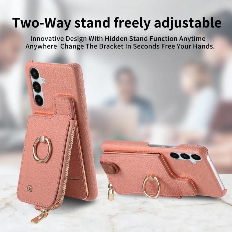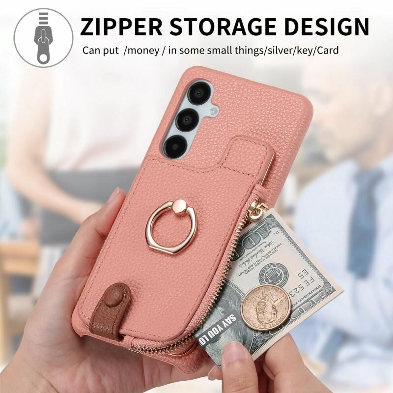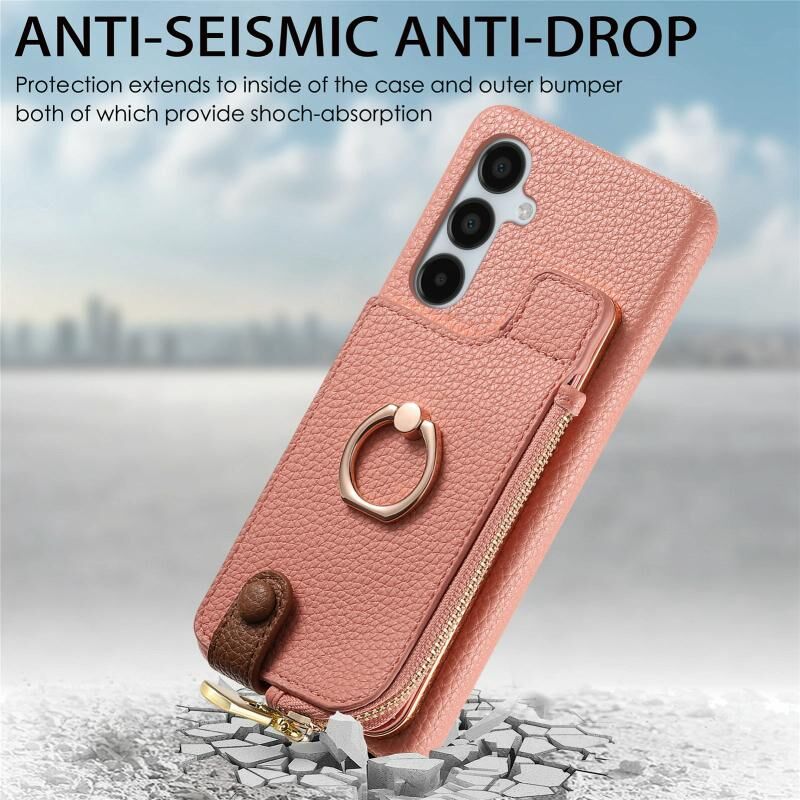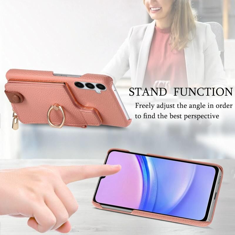 Για Samsung Galaxy A15 Litchi δέρμα λάδι Edge δαχτυλίδι φερμουάρ πορτοφόλι πίσω υπόθεση τηλεφώνου (ροζ)