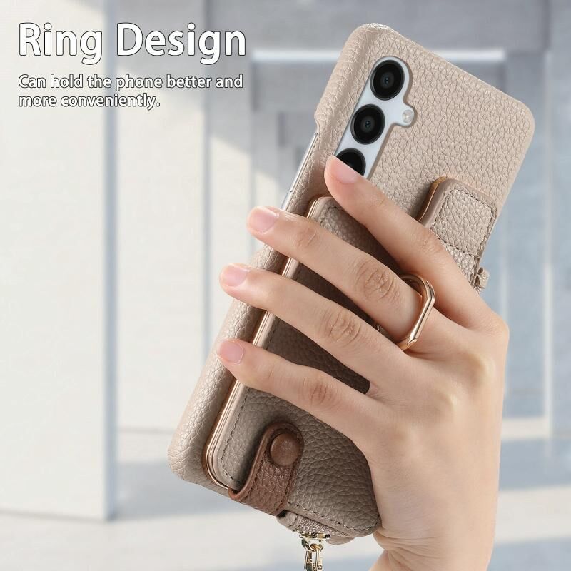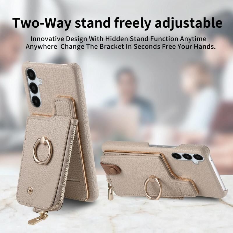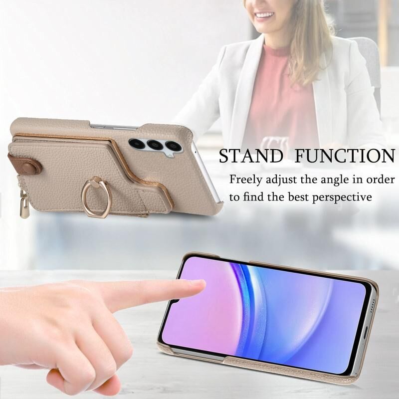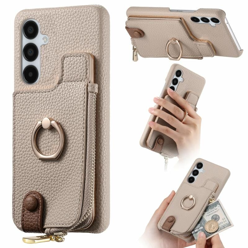 Για Samsung Galaxy A15 Litchi δέρμα λάδι Edge δαχτυλίδι φερμουάρ πορτοφόλι πίσω υπόθεση τηλεφώνου (λευκό)