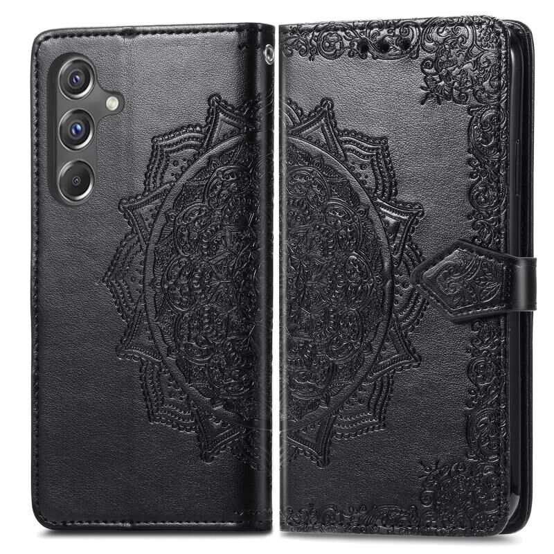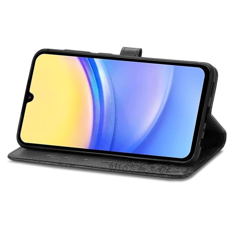 Για το Samsung Galaxy A15 Mandala λουλούδι ανάγλυφο δερμάτινη θήκη τηλεφώνου (Μαύρο)