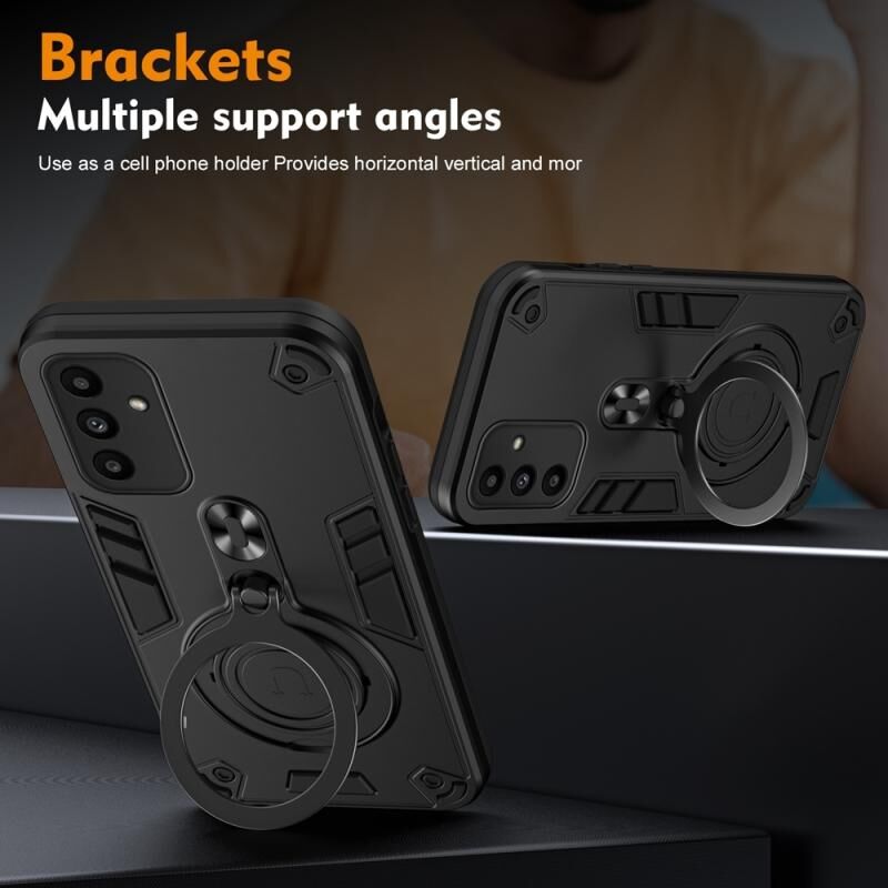 Για Samsung Galaxy A15 Μεταλλικό δαχτυλίδι 360 μοίρες περιστρεφόμενη θήκη τηλεφώνου PC Hybrid TPU (μαύρο)