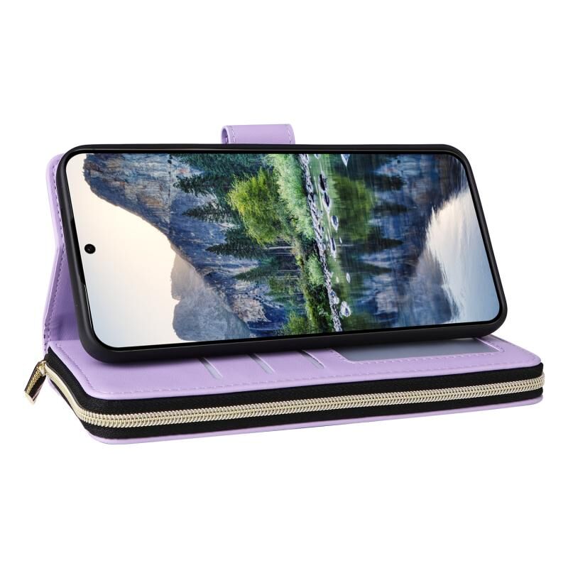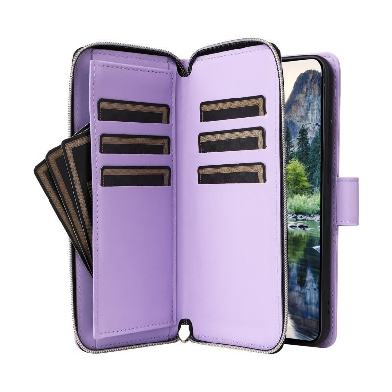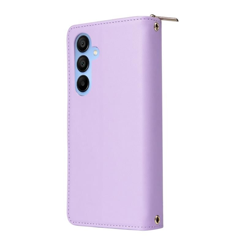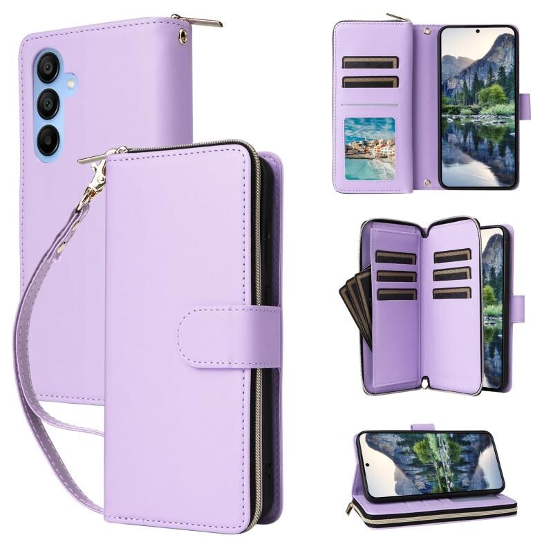 Για Samsung Galaxy A15 εννέα-κάρτα Slots φερμουάρ πορτοφόλι τσάντα δερμάτινη θήκη τηλεφώνου (μωβ)