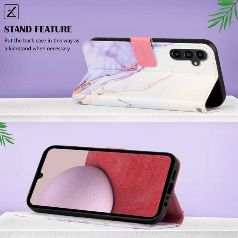 Θήκη τηλεφώνου Samsung Galaxy A15 PT003 με σχέδιο μάρμαρου, δερμάτινη, τύπου flip (Λευκό-Μωβ LS006)