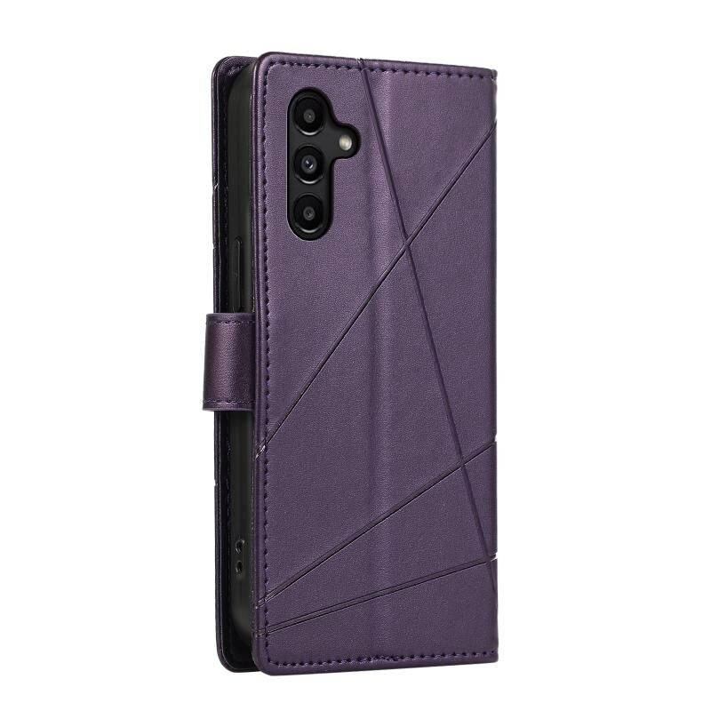 Θήκη τηλεφώνου Samsung Galaxy A15 από γνήσιο δέρμα PU με ανάγλυφη υφή και λεπτομέρεια γραμμής (Μωβ)