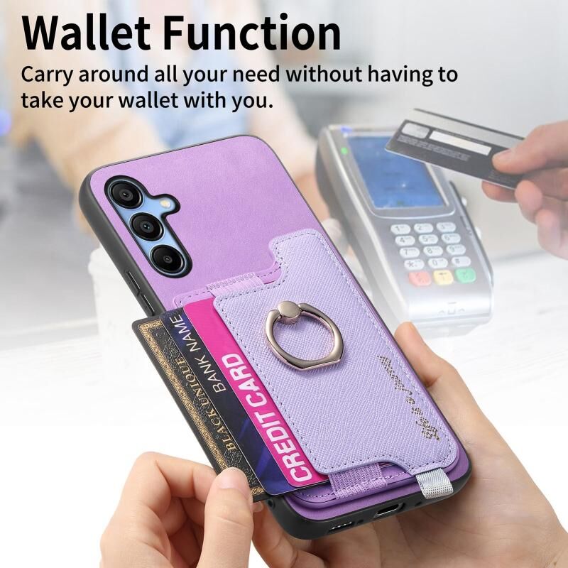 Θήκη κινητού Samsung Galaxy A15 Retro Cross Leather Ring Horizontal Insert Card Bag MagSafe (Μωβ)