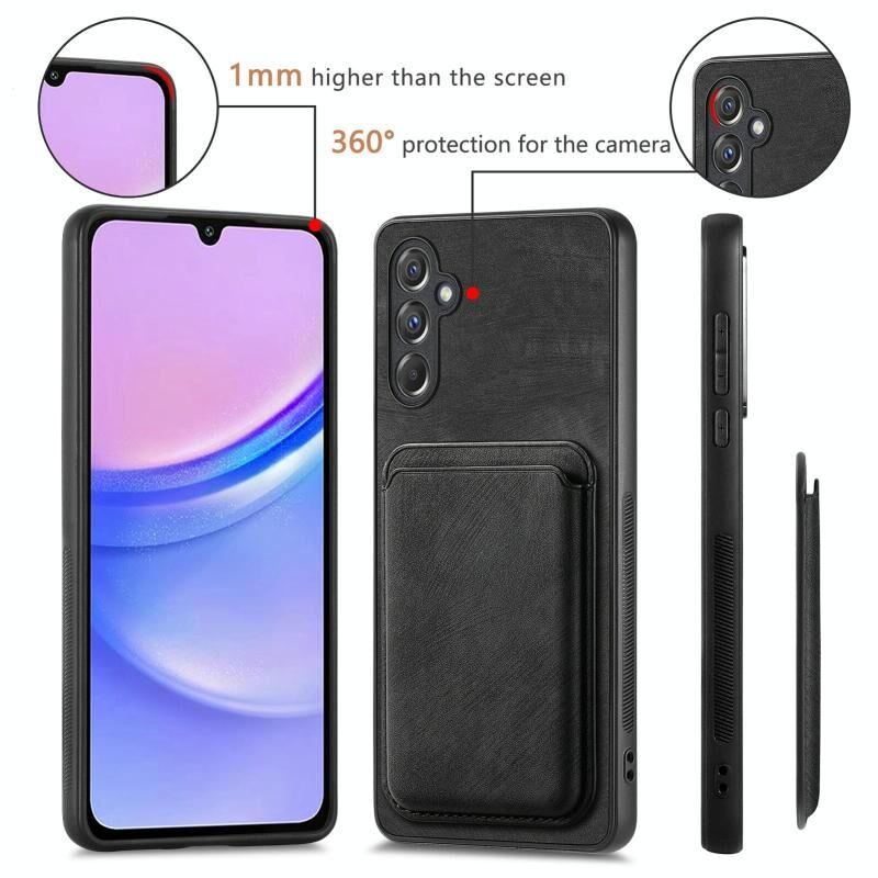 Για Samsung Galaxy A15 Ρετρό δερμάτινη τσάντα κάρτας μαγνητική θήκη τηλεφώνου (Μαύρο)