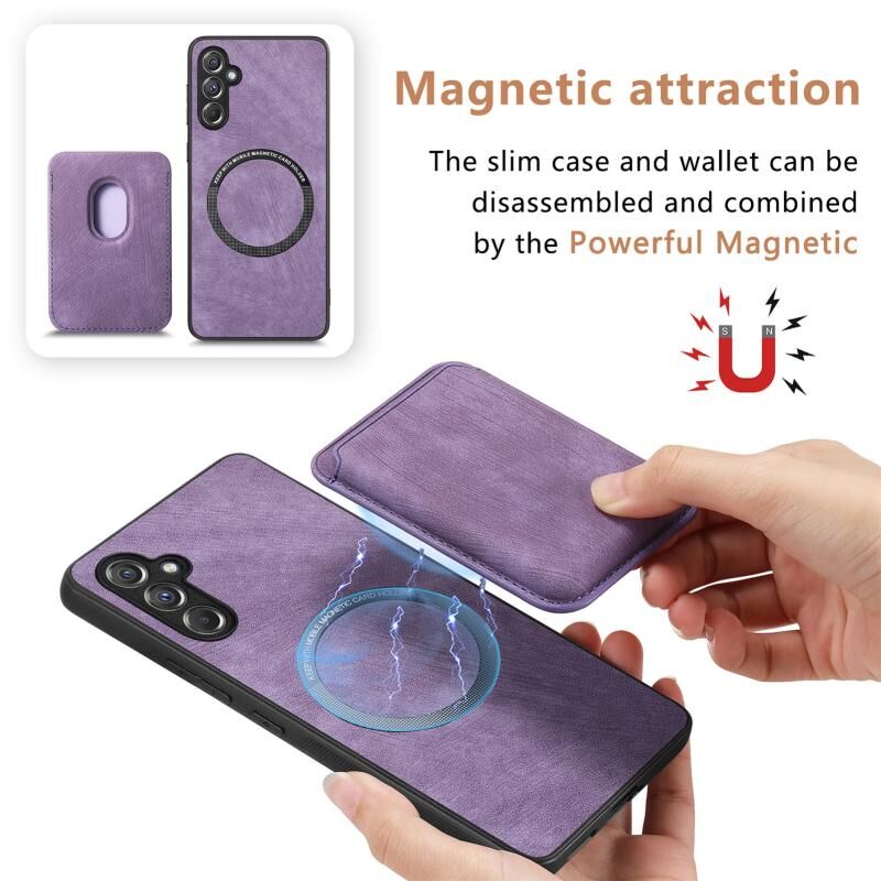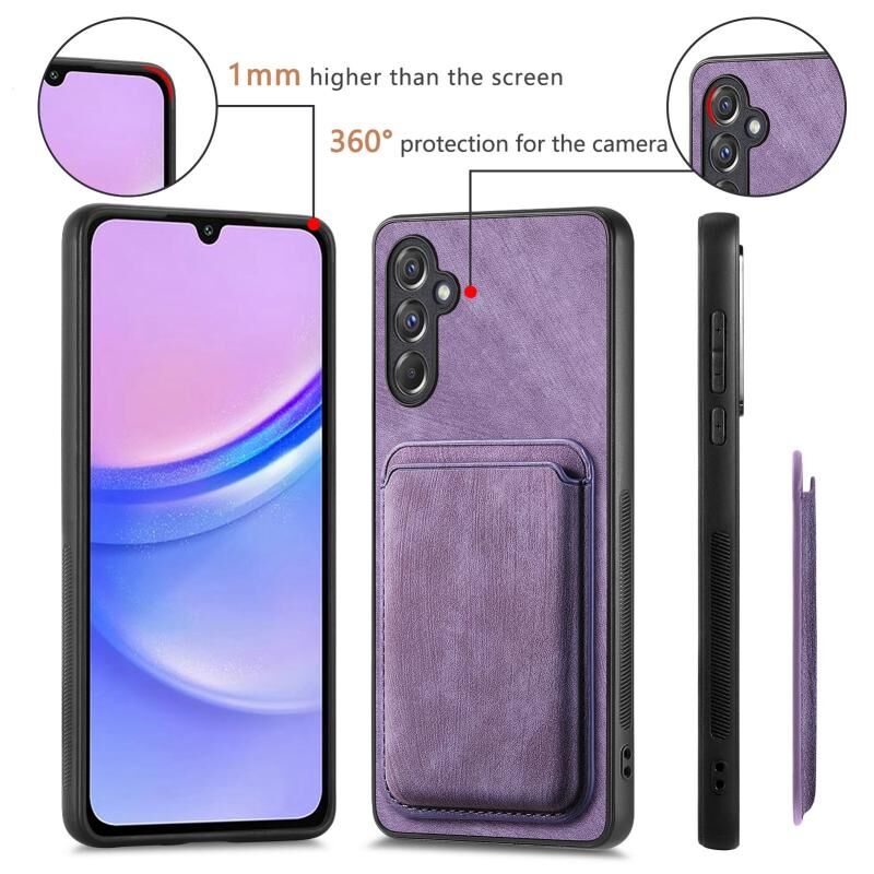 Για Samsung Galaxy A15 Ρετρό δερμάτινη τσάντα κάρτα μαγνητική θήκη τηλεφώνου (Μωβ)