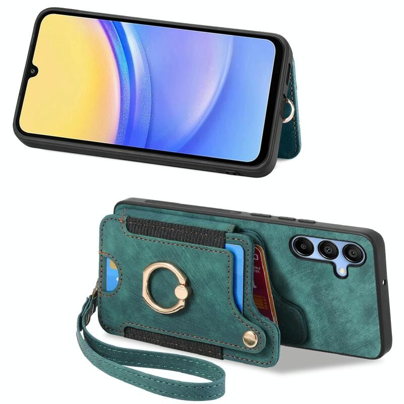 Για Samsung Galaxy A15 Ρετρό δέρμα αίσθηση δαχτυλίδι πολυ-κάρτα πορτοφόλι υπόθεση τηλεφώνου (πράσινο)