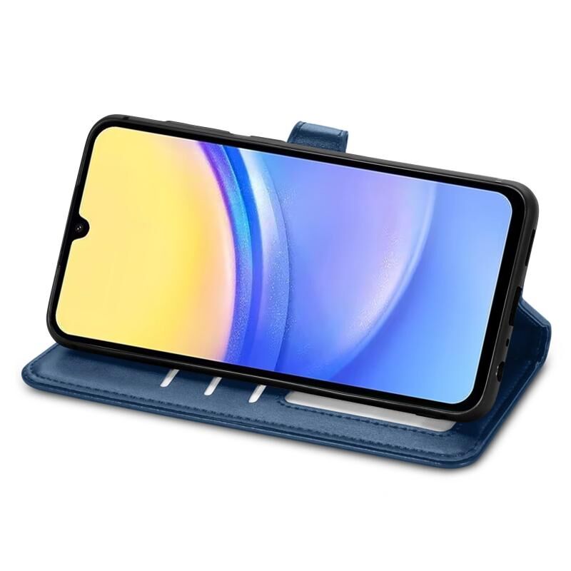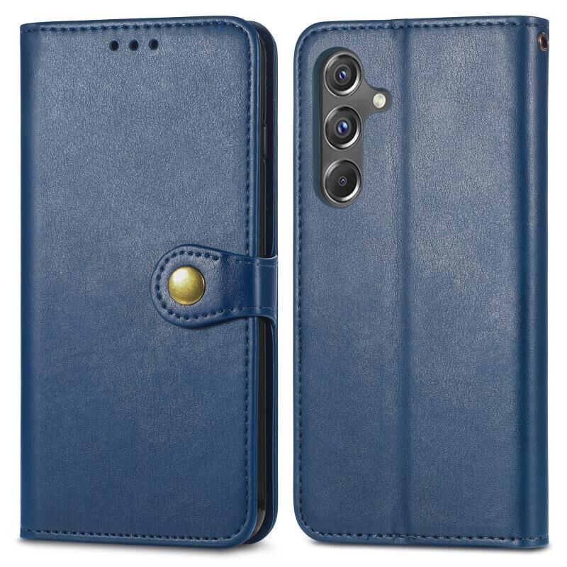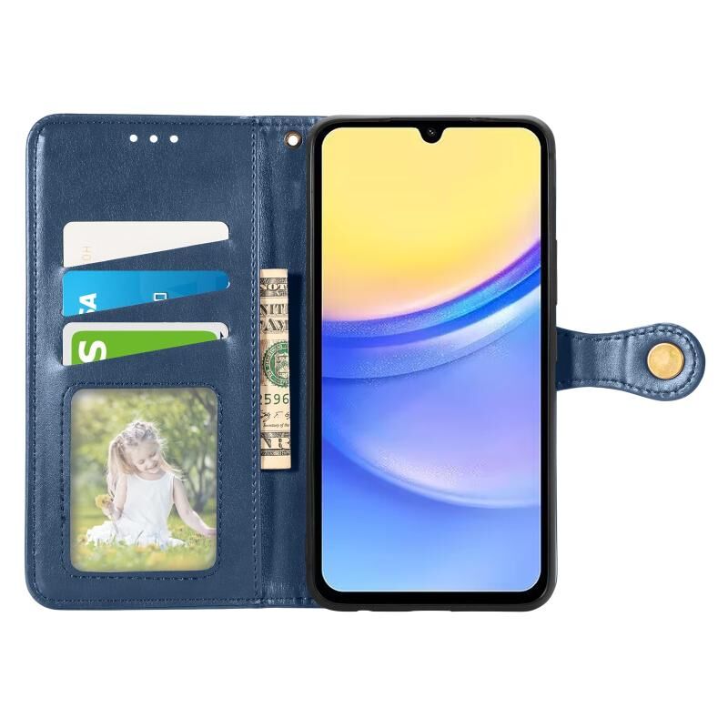 Για Samsung Galaxy A15 Ρετρό στερεό χρώμα αγκράφα δερμάτινη θήκη τηλεφώνου (Μπλε)