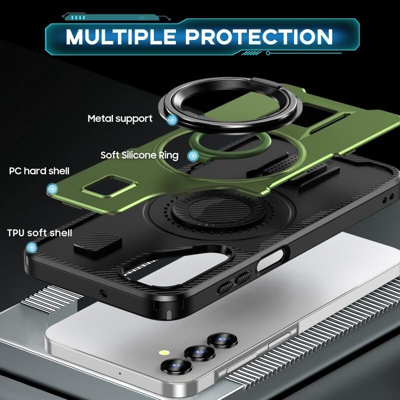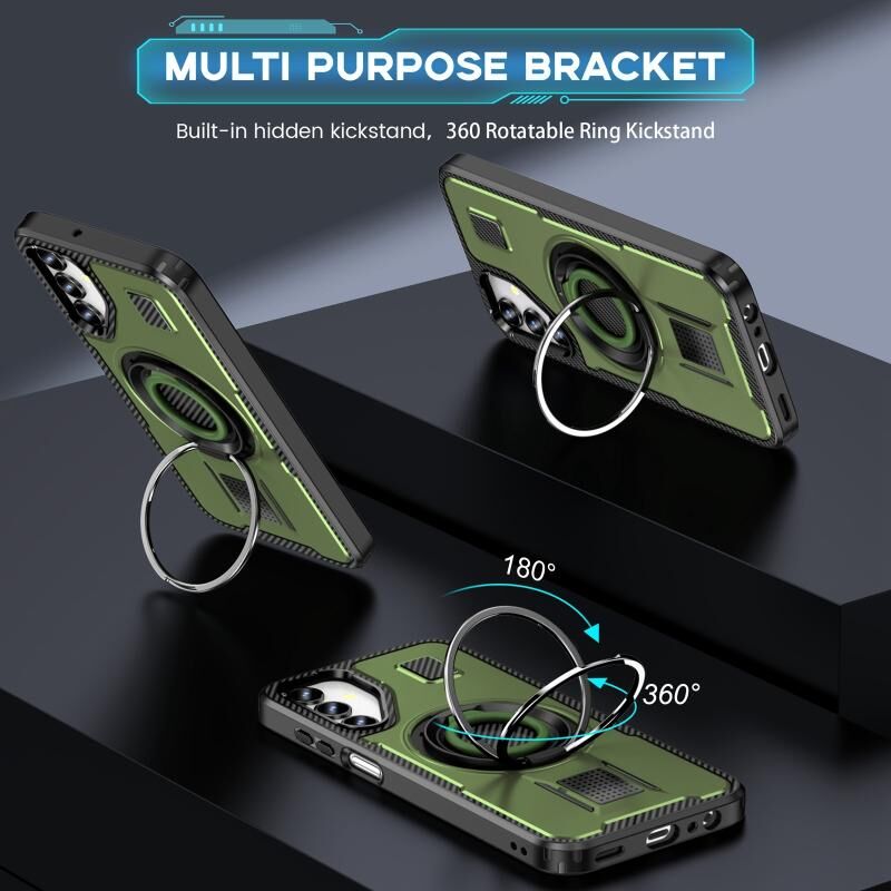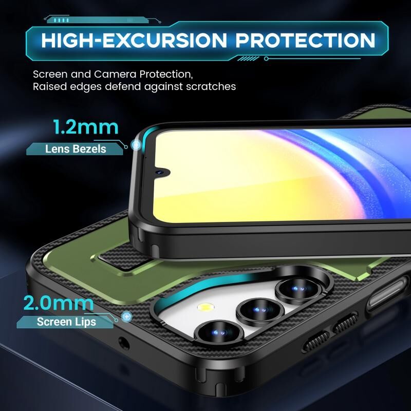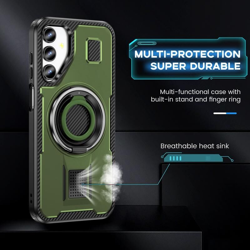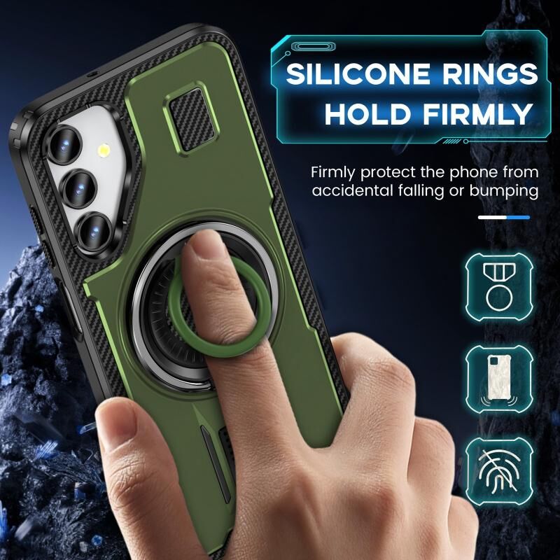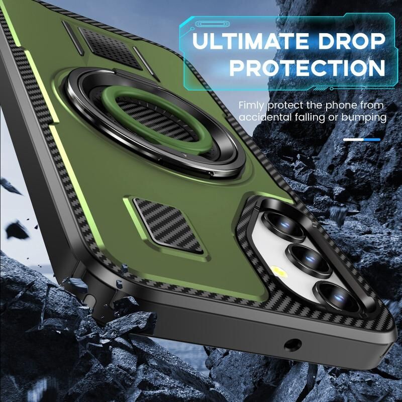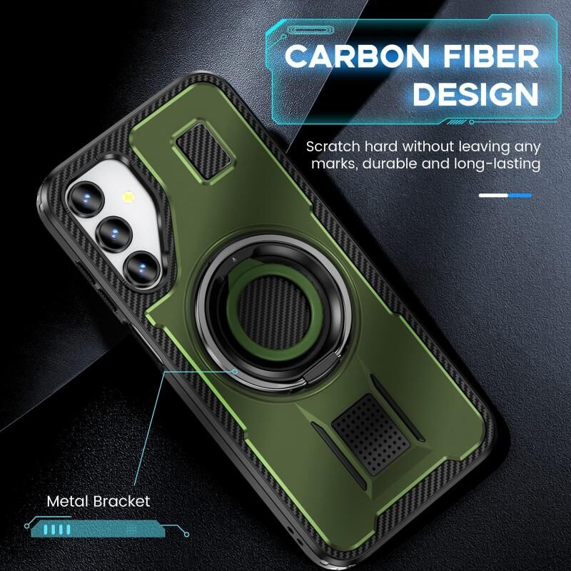 Για Samsung Galaxy A15 δαχτυλίδι κάτοχος ανθρακονήματα PC υβριδικό TPU τηλέφωνο υπόθεση (Στρατού πράσινο)