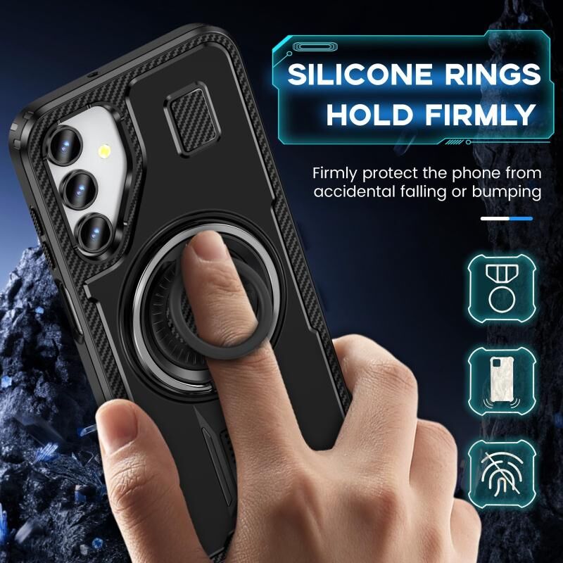 Για Samsung Galaxy A15 δαχτυλίδι κάτοχος ανθρακονήματα PC υβριδικό TPU τηλέφωνο υπόθεση (μαύρο)