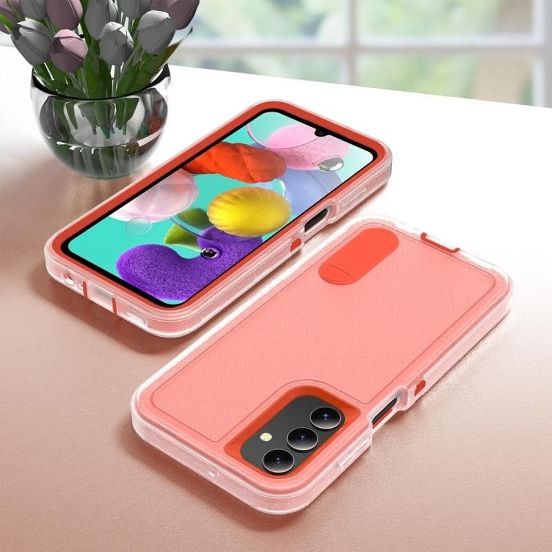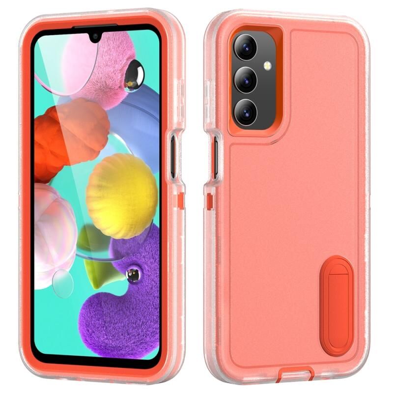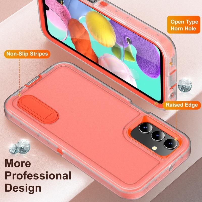 Θήκη τηλεφώνου για Samsung Galaxy A15, υβριδική από PC και σιλικόνη, ανθεκτική με βάση στήριξης (Κόκκινο Ρόδι + Ανοιχτό Πράσινο)