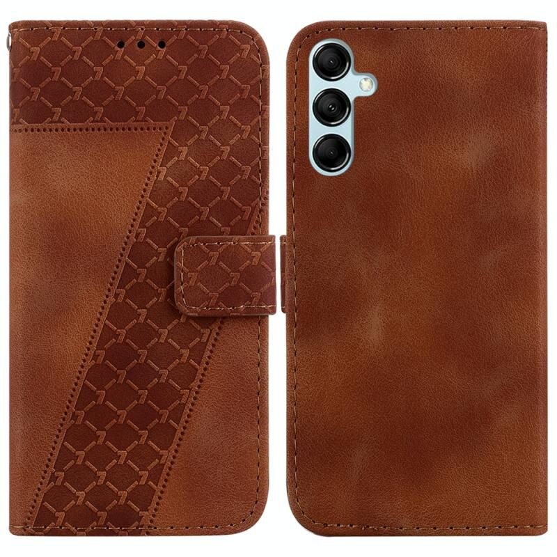 Θήκη τηλεφώνου Samsung Galaxy A15 από δέρμα με ανάγλυφο σχέδιο σε σχήμα επτά (Καφέ)