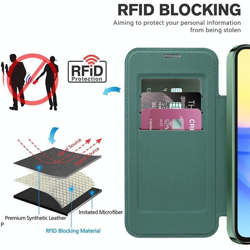 Θήκη τηλεφώνου δερμάτινη με μαγνητική υποστήριξη MagSafe και προστασία RFID κατά της κλοπής για Samsung Galaxy A15 Shield (Σκούρο Μπλε)