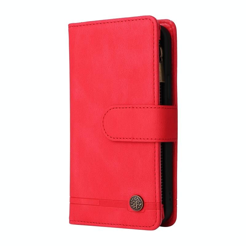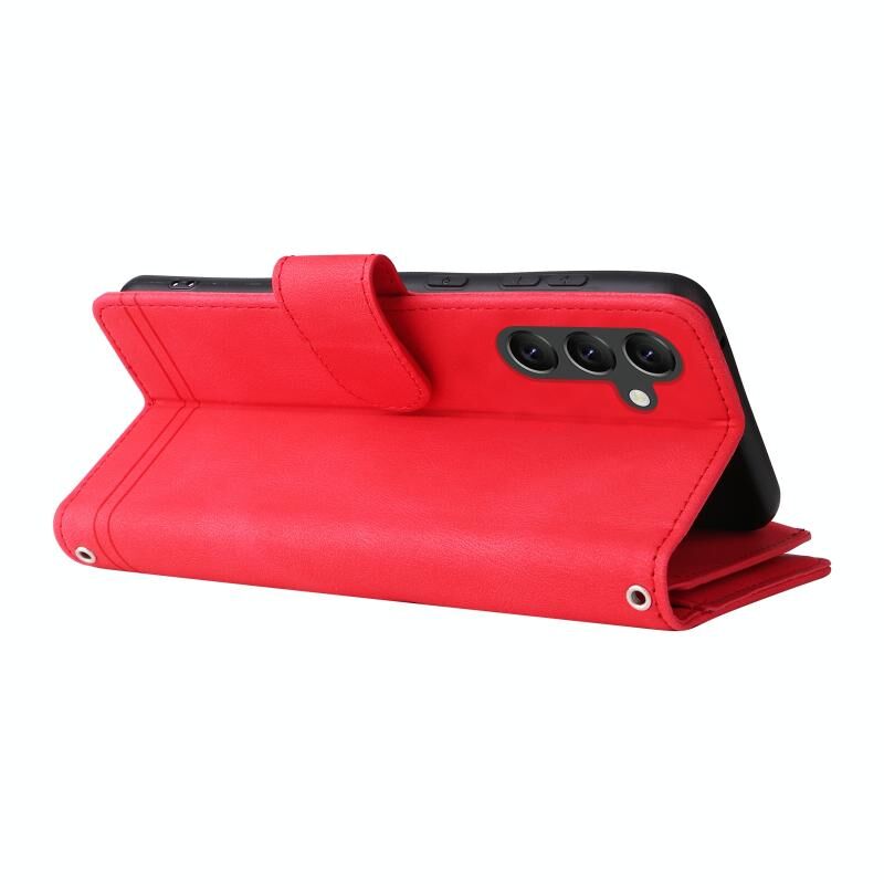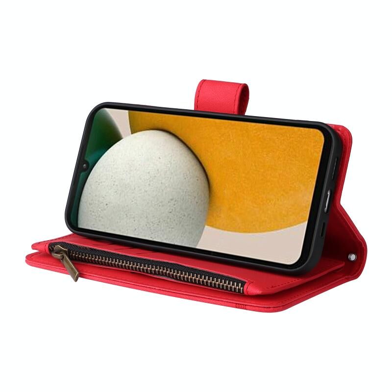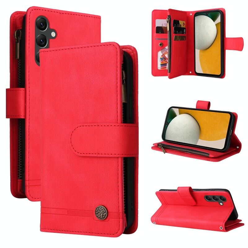 Για Samsung Galaxy A15 δέρμα αίσθηση Multi-Card πορτοφόλι φερμουάρ δέρμα τηλέφωνο υπόθεση (κόκκινο)