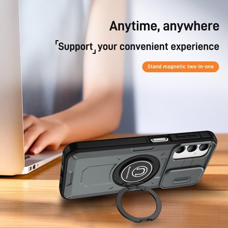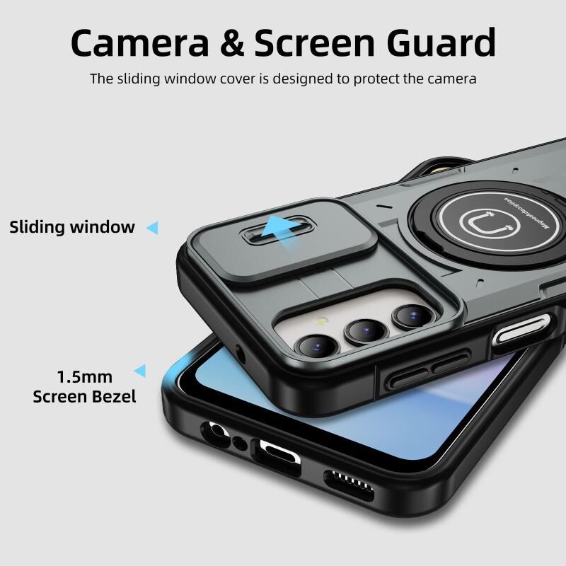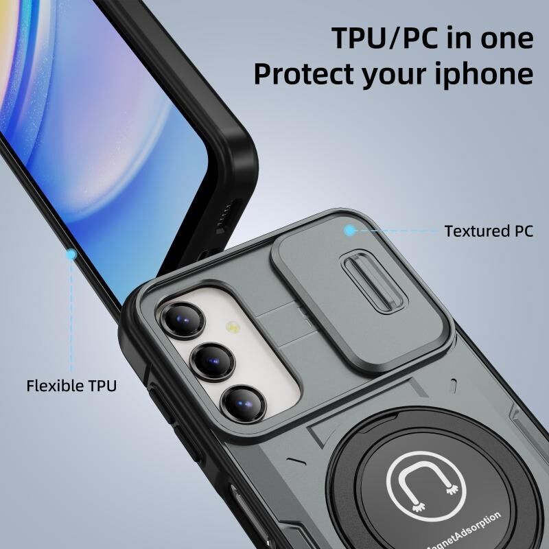 Για Samsung Galaxy A15 συρόμενη Camshield TPU υβριδικό PC μαγνητική θήκη τηλέφωνο κάτοχος (γκρι)