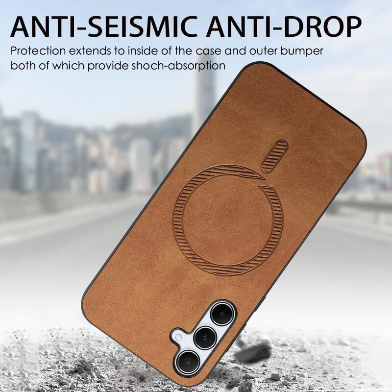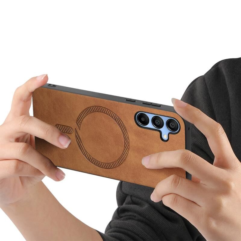 Θήκη κινητού τηλεφώνου Samsung Galaxy A15, μονόχρωμη, ρετρό, με μαγνητική σύνδεση (Magsafe), από δερματίνη (PU) (Καφέ)