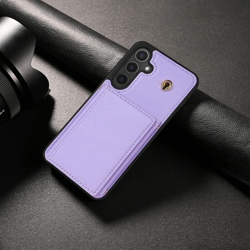 Για το Samsung Galaxy A15 Τρεις φορές κάρτα τσάντα υπόθεση τηλεφώνου με μακρύ κορδόνι (μωβ)