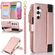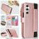 Για Samsung Galaxy A15 Wristband κάτοχος φερμουάρ πορτοφόλι RFID δερμάτινη θήκη τηλεφώνου (Rose Gold)