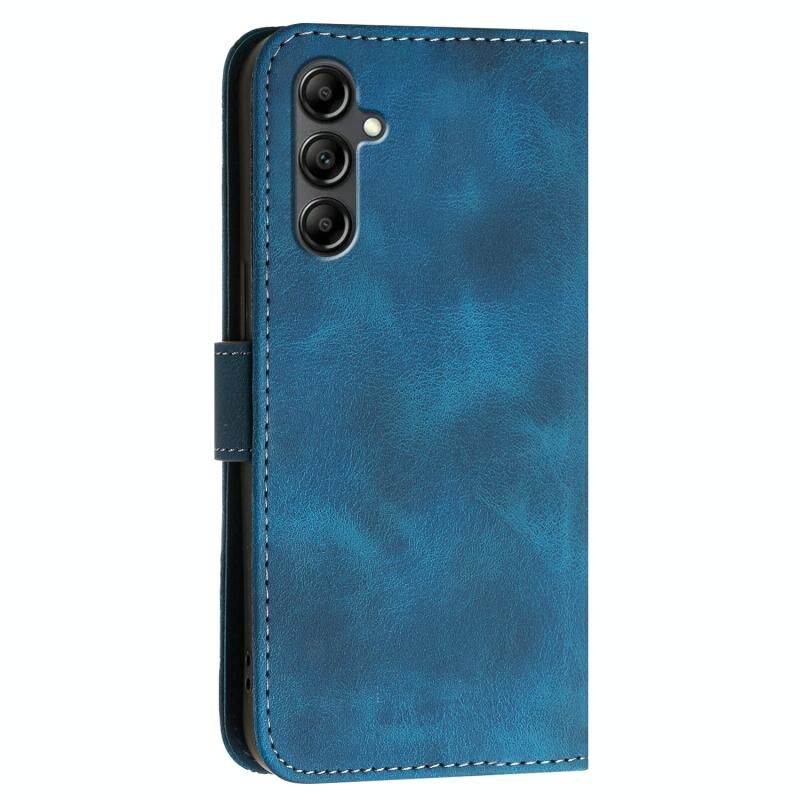 Θήκη τηλεφώνου Samsung Galaxy A15 YX0080, δερμάτινη, τύπου flip, με ανάγλυφο σχέδιο πεταλούδας και κορδόνι (Σκούρο μπλε)