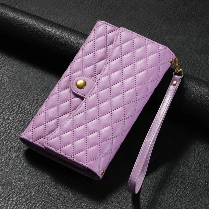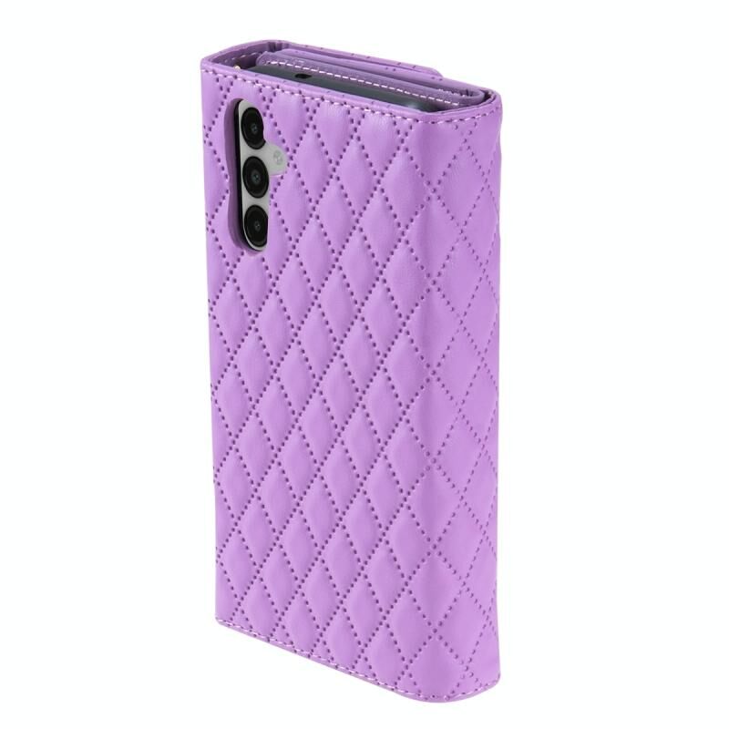 Για Samsung Galaxy A15 φερμουάρ πολλαπλών καρτών πορτοφόλι ρομβοειδή δερμάτινη θήκη τηλεφώνου (μωβ)
