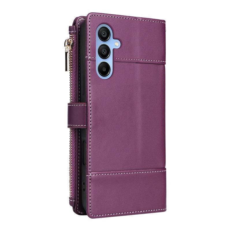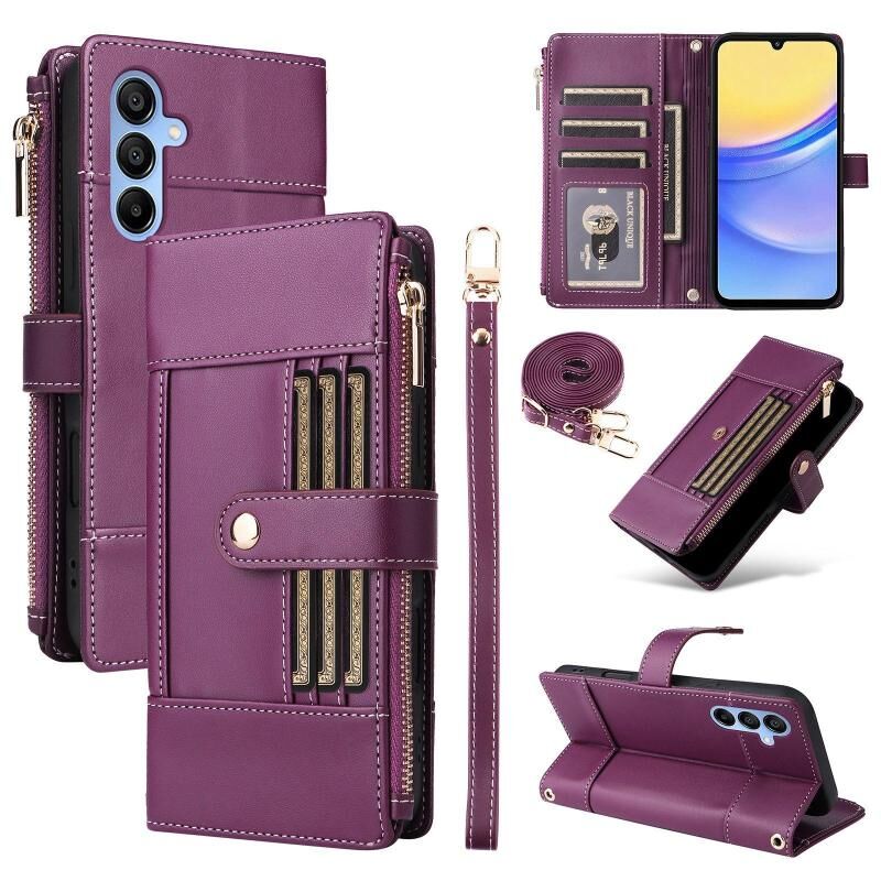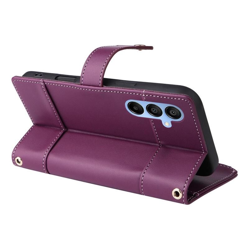 Θήκη τηλεφώνου Samsung Galaxy A16 / 26 από δέρμα με φερμουάρ, μπλοκάρισμα RFID και λουρί crossbody (Χρυσό ροζ)