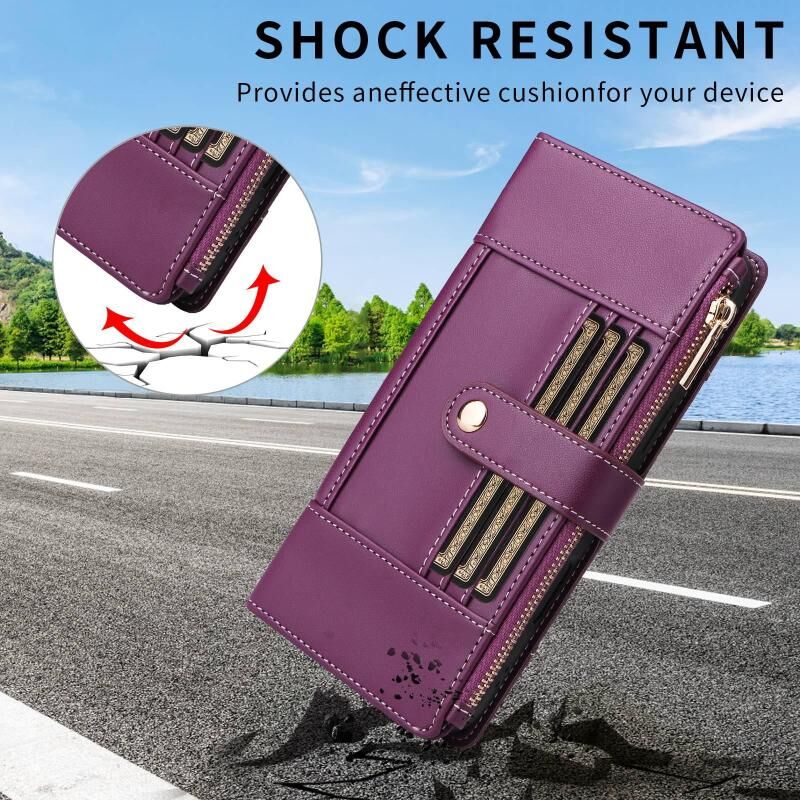 2. Λειτουργία πολλαπλών καρτών & πορτοφολιού: Θήκες για κάρτες και διαμέρισμα με φερμουάρ για την αποθήκευση των πιστωτικών σας καρτών, μετρητών ή μικρών σημειώσεων για καθημερινή χρήση. (Σημείωση: Δύο θήκες για κάρτες είναι για μικρότερα τηλέφωνα, τρεις θήκες για κάρτες είναι για μεγαλύτερα τηλέφωνα, ανάλογα με το πραγματικό προϊόν)