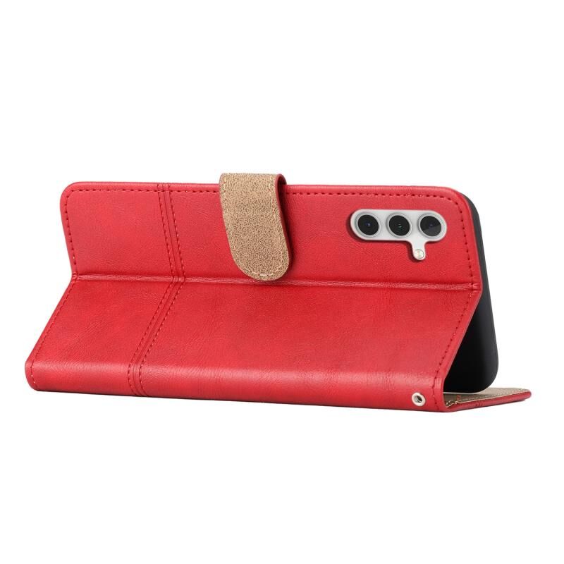 Για το Samsung Galaxy A16 4G / 5G Cowhide υφή ραφή δερμάτινη θήκη τηλεφώνου (κόκκινο)