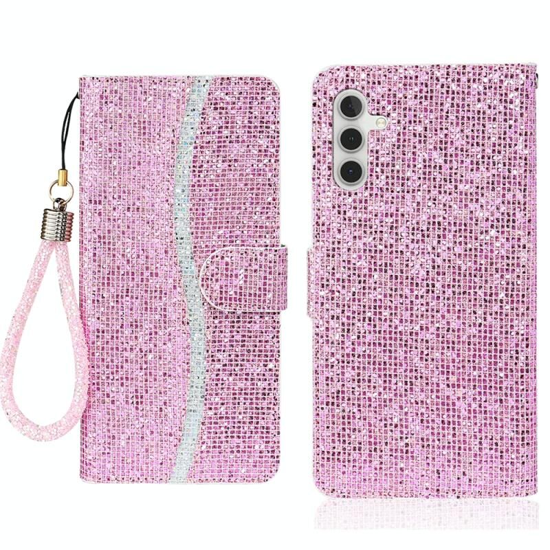Θήκη τηλεφώνου Samsung Galaxy A16 4G / 5G από δέρμα με γκλίτερ (Μαύρο)