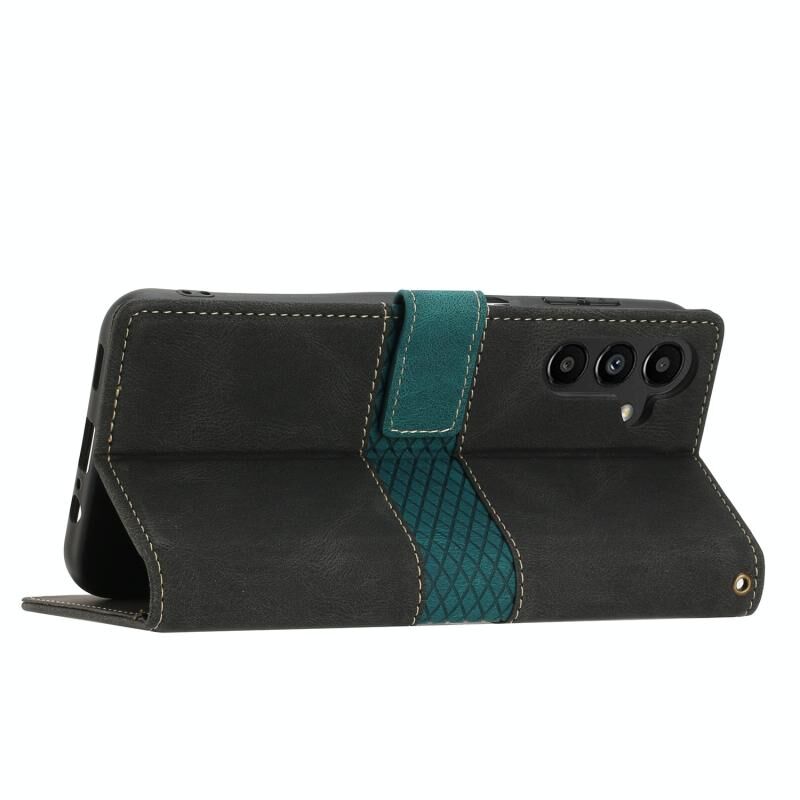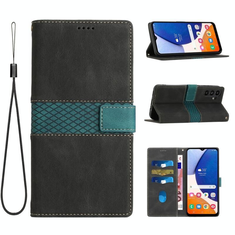 Για Samsung Galaxy A16 4G / 5G Grid Stitching Δερμάτινη θήκη τηλεφώνου με κορδόνι (Μαύρο)