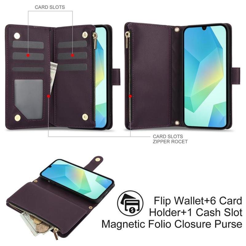 For Samsung Galaxy A16 4G / 5G YM016 Rhombic Zipper Card Wallet Leather Phone Case with Lanyard(Dark Purple)