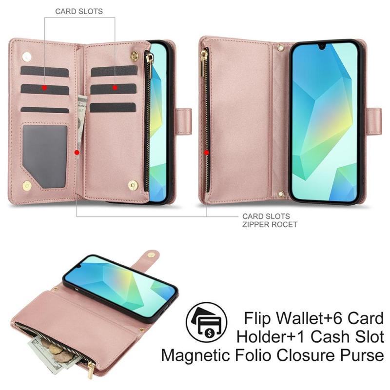 5. Multi-card Wallet Function: multiple card slots and zipper wallet pockets, cash compartments can store your credit cards and daily small bills.