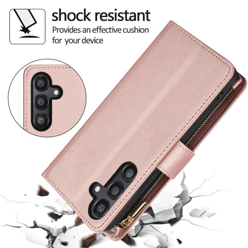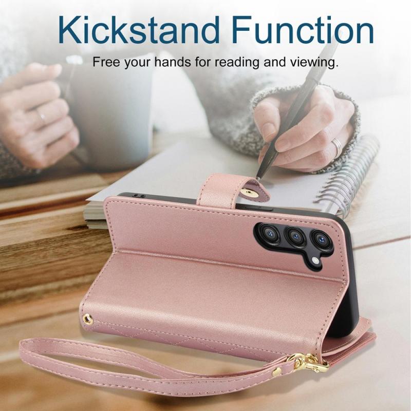For Samsung Galaxy A16 4G / 5G YM016 Rhombic Zipper Card Wallet Leather Phone Case with Lanyard(Rose Gold)