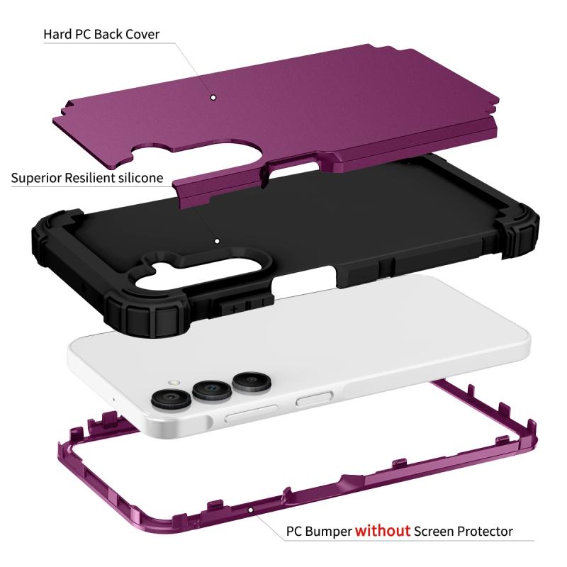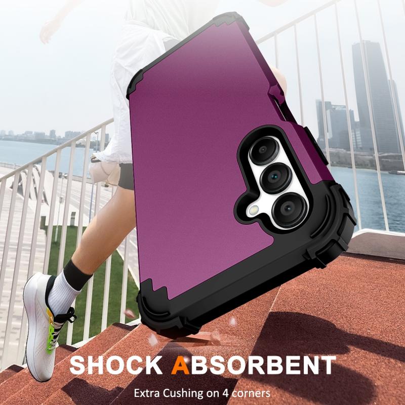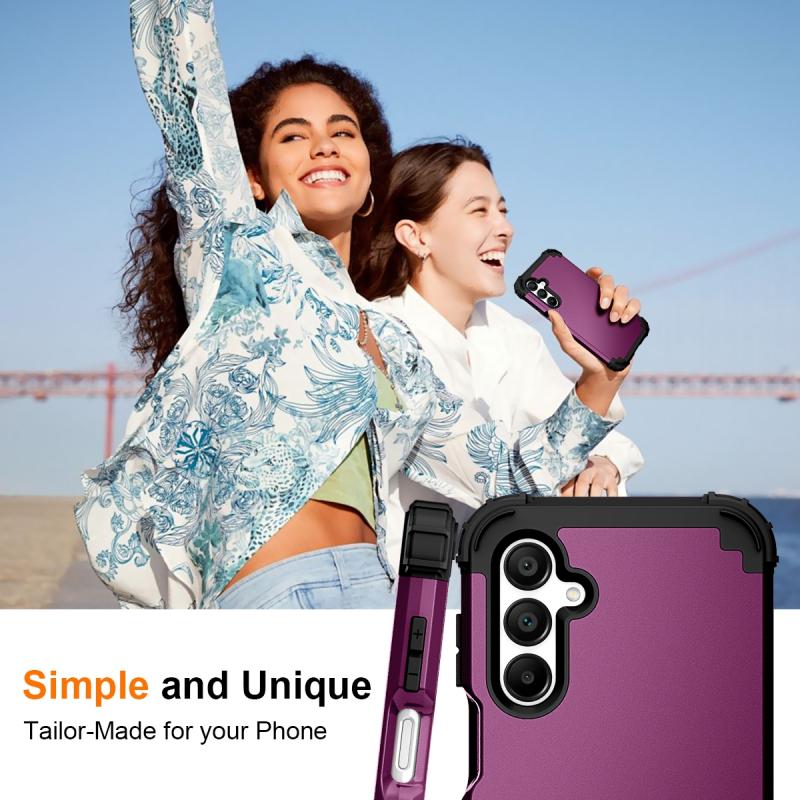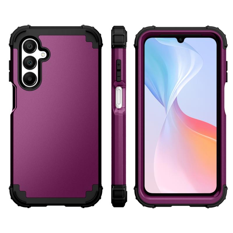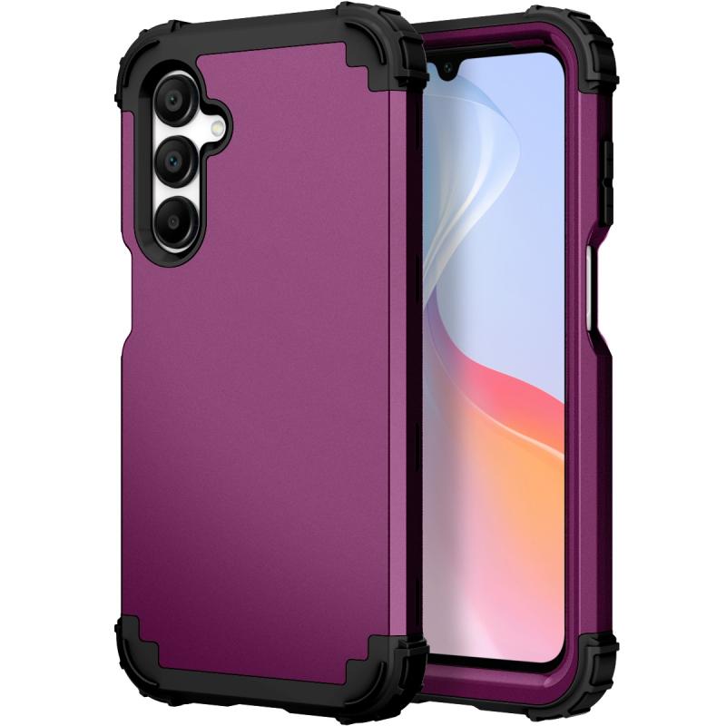 Θήκη κινητού τηλεφώνου 3 σε 1 από σιλικόνη και PC ανθεκτική σε κρούσεις για Samsung Galaxy A16 5G (Σκούρο Μωβ-Μαύρο)