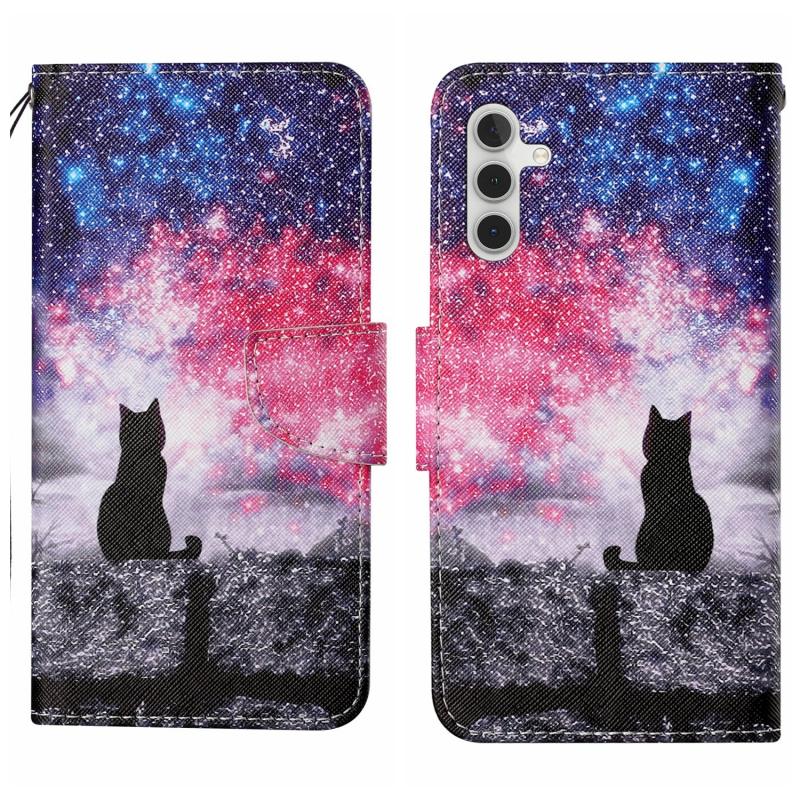 For Samsung Galaxy A16 5G / 4G Colored Drawing Pattern Leather Phone Case(Star Sky Cat)