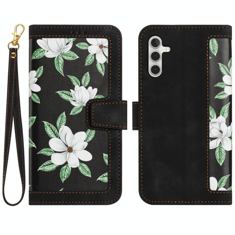 For Samsung Galaxy A16 5G / 4G Floral Pattern Leather Phone Case with Lanyard(Black)