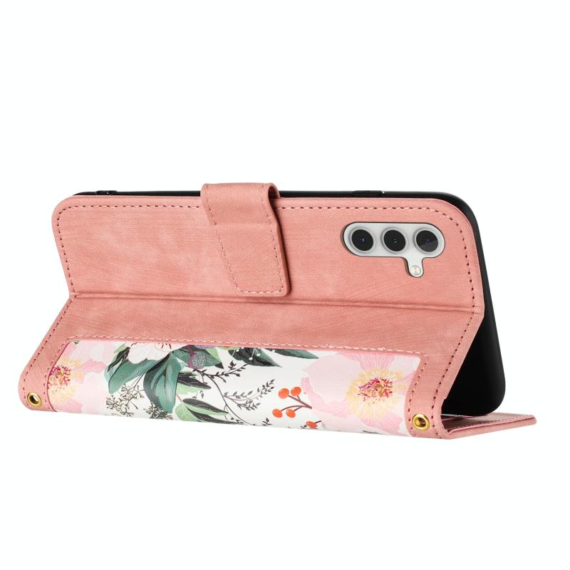 Θήκη τηλεφώνου Samsung Galaxy A16 5G / 4G με λουλουδάτο σχέδιο από δέρμα με κορδόνι (Ανοιχτό Μπλε)