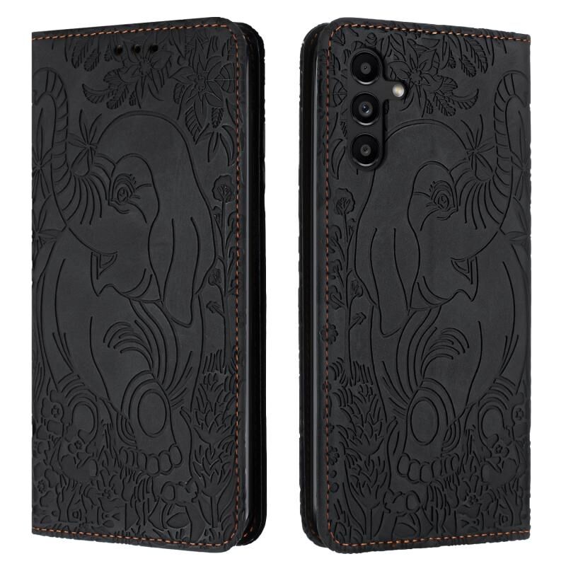 Θήκη τηλεφώνου δερμάτινη ανάγλυφη με σχέδιο ρετρό ελέφαντα για Samsung Galaxy A16 5G / 4G (Μωβ)