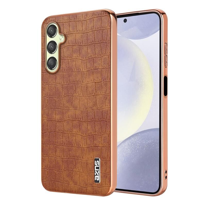 Θήκη κινητού τηλεφώνου πλήρους κάλυψης με ηλεκτρολυτικό πλαίσιο και υφή κροκόδειλου για Samsung Galaxy A16 5G AZNS (Μαύρο) (Καφέ)