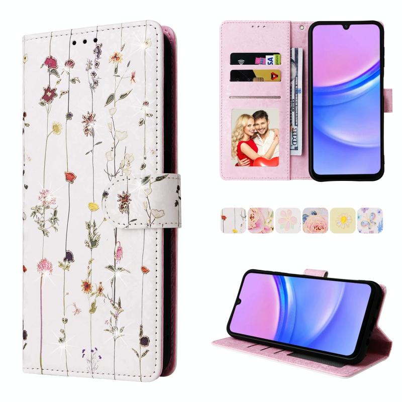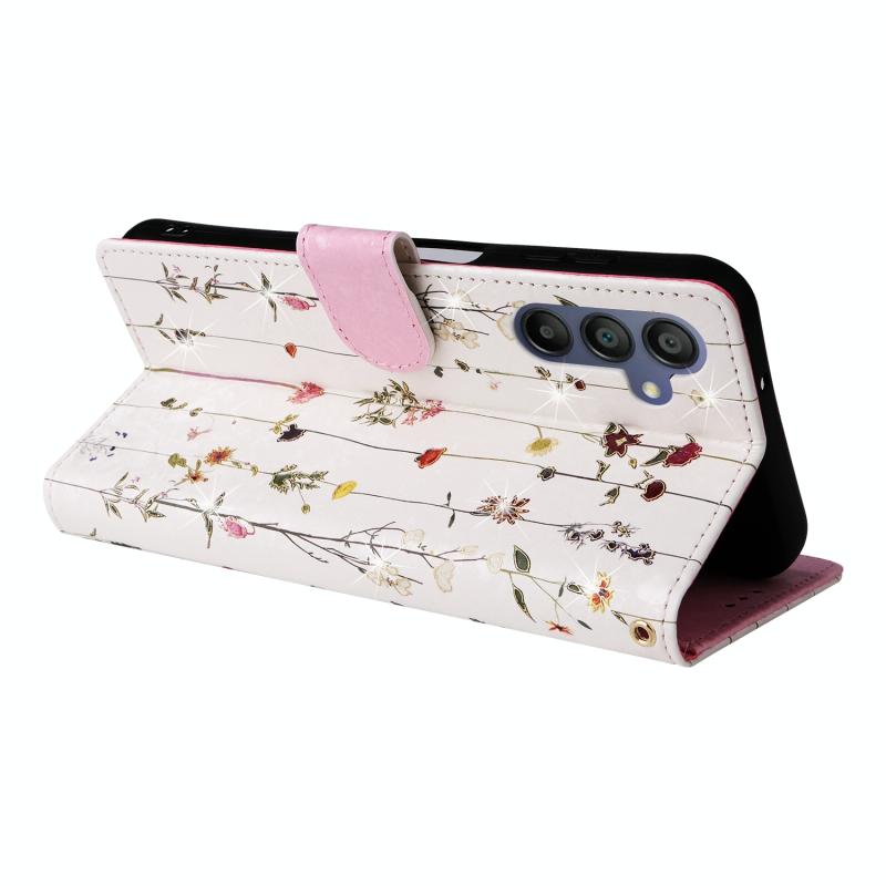 Θήκη τηλεφώνου Samsung Galaxy A16 5G από δέρμα με τεχνολογία RFID και σχέδιο "Flowers World" σε απόχρωση μπρονζέ (βαφής).