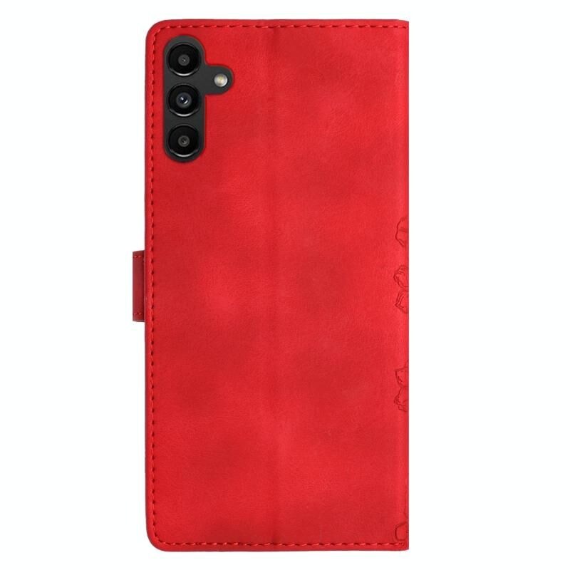 Θήκη τηλεφώνου Samsung Galaxy A16 5G Cherry Blossom Butterfly με ανάγλυφη υφή PU (Κόκκινη)