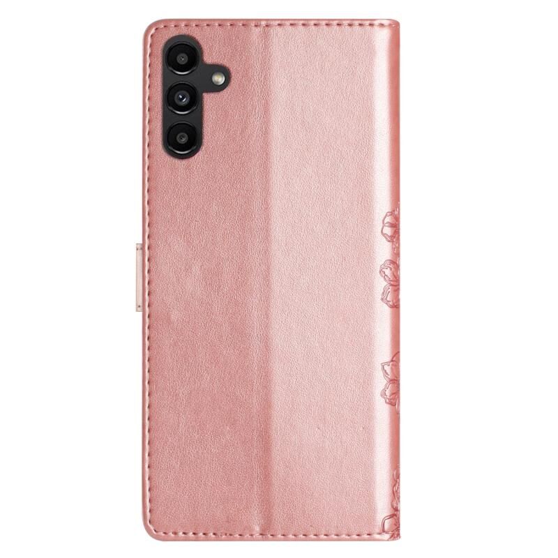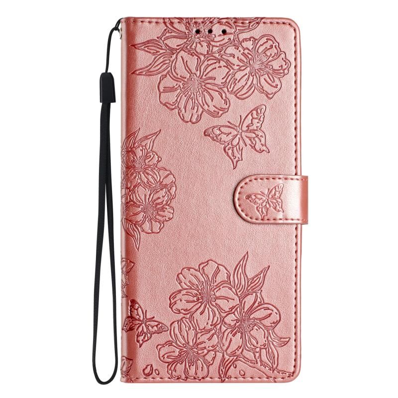 Θήκη τηλεφώνου Samsung Galaxy A16 5G Cherry Blossom Butterfly με ανάγλυφη υφή PU (Ροζ χρυσός)
