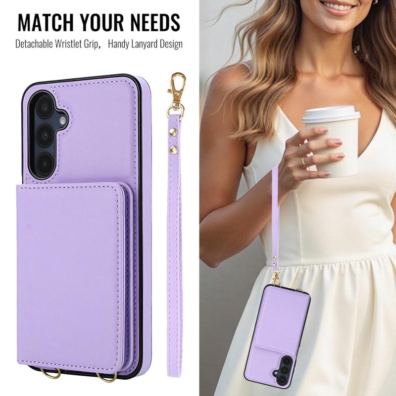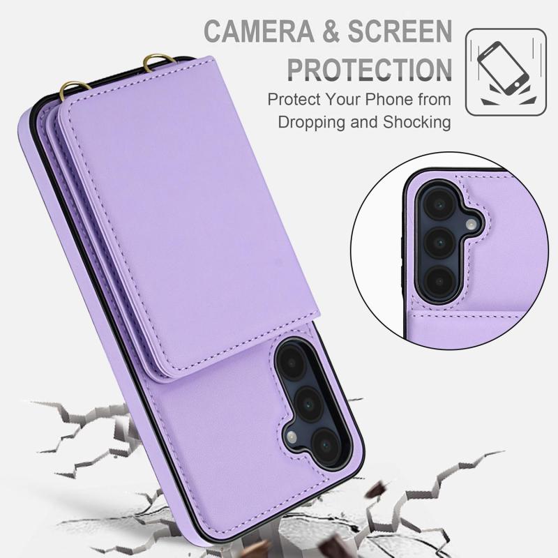 For Samsung Galaxy A16 5G Crossbody Dual-buckle Wallet RFID Back Leather Phone Case(Light Purple)