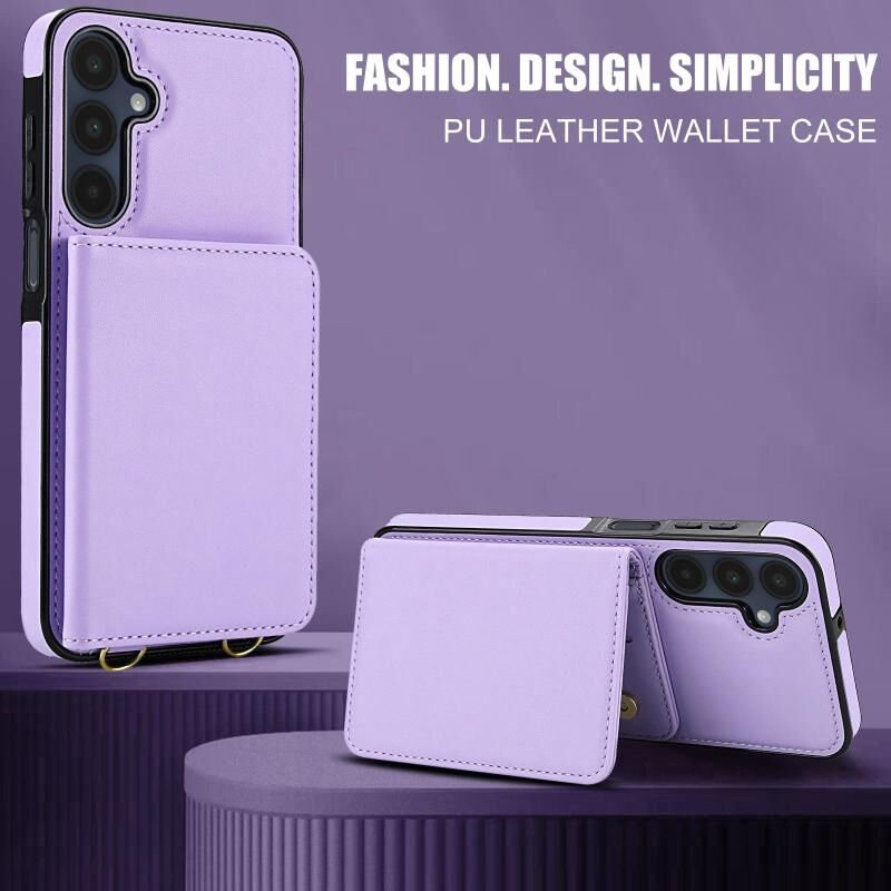 Θήκη κινητού Samsung Galaxy A16 5G από δέρμα, λευκού χρώματος, με πορτοφόλι, διπλή αγκράφα και προστασία RFID. (ανοιχτό μωβ)