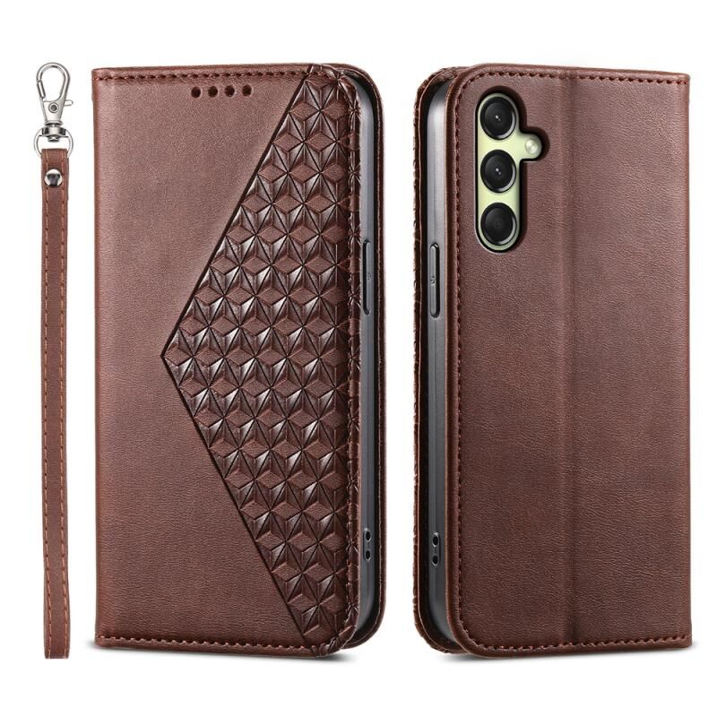 Για το Samsung Galaxy A16 5G 5G Cubic Grid Calf υφή μαγνητική δερμάτινη θήκη τηλεφώνου (καφέ)