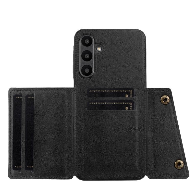 Για Samsung Galaxy A16 5G Διπλό πόρπη κάρτα υποδοχές μαγνητική θήκη τηλεφώνου (Μαύρο)