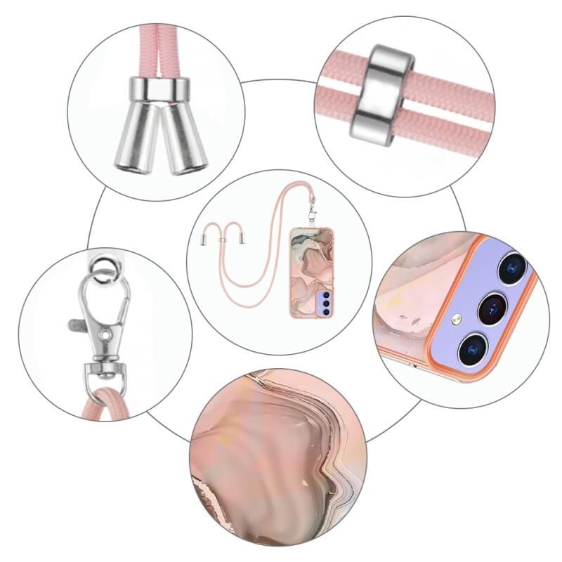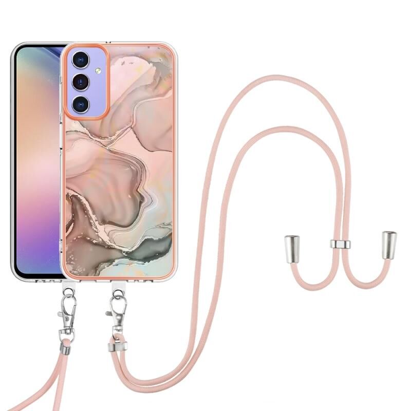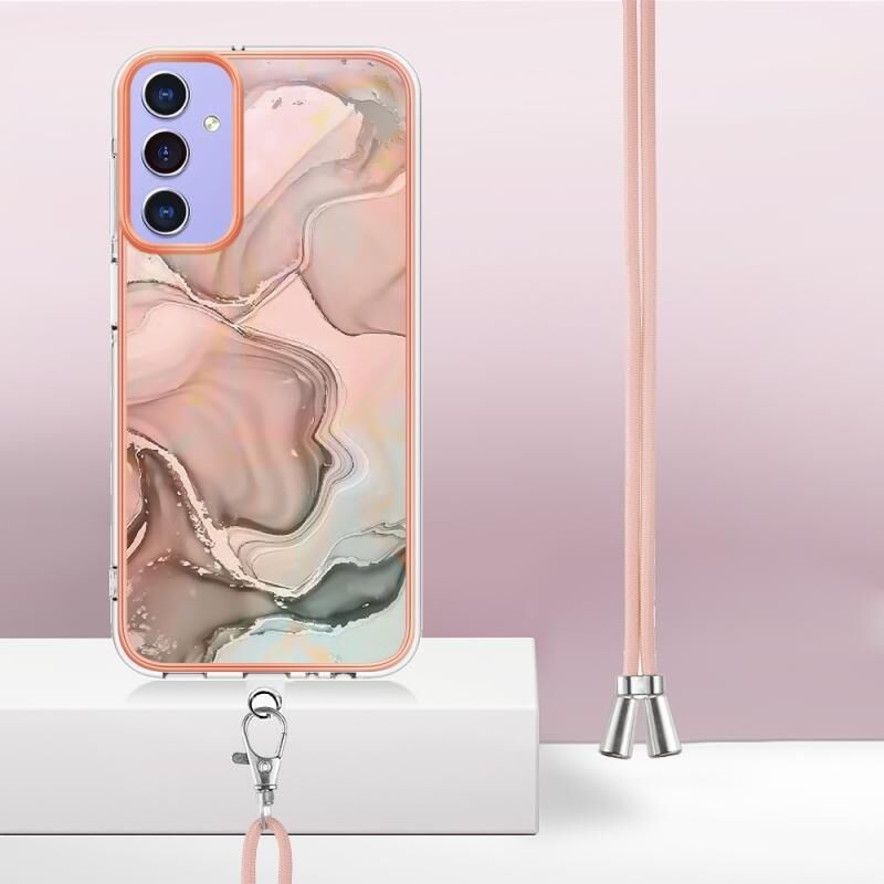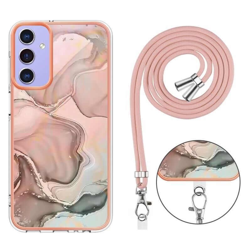 For Samsung Galaxy A16 5G Electroplating Marble Dual-side IMD Phone Case with Lanyard(Rose Gold 015)