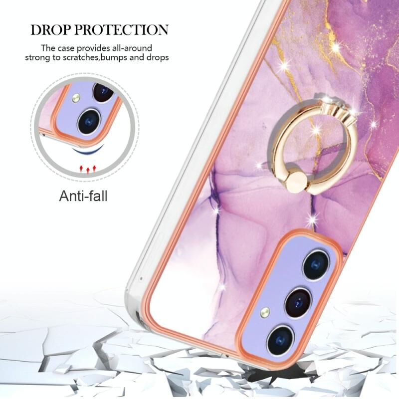 Θήκη κινητού τηλεφώνου Samsung Galaxy A16 5G με Ηλεκτρολυτική επικάλυψη, σχέδιο Μάρμαρου IMD, από TPU με Δακτύλιο Στήριξης (Μωβ 002)